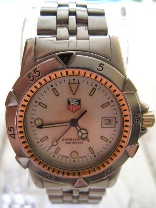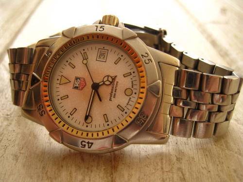 You are bidding on a Tag Heuer Professional 1500 series watch. This is ref. 955.713G, the exact same model worn by President Obama. The dial is marked Tag Heuer Professional 200 Meters, T-Swiss Made-T and has the date at 3 o’clock.