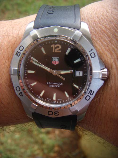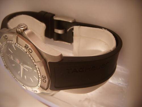 Watch Information Brand Name: TAG Heuer Model number: WAF1110 BOXES no, AUTHENTIC = OF COURSE Dial window material type: anti-reflective-scratch-resistant-sapphire Display Type: analog Clasp: BUCKLE Case material: stainless-steel Case diameter: 38.4 millimeters Case Thickness: 10 millimeters Band material: rubber Band length: mens Band width: 20 millimeters Band Color: black Dial color: black Bezel material: stainless-steel Bezel Function: unidirectional Calendar: Date Movement: swiss-quartz Water resistant depth: 984 Feet