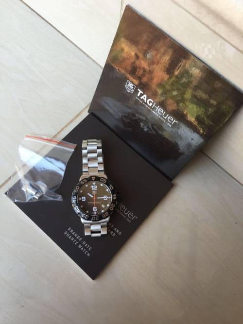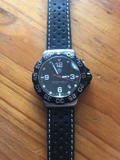 SUPPLIED WITH A GENERIC LEATHER STRAP AS WELL AS THE ORIGINAL TAG HEUER STAINLESS STEEL BRACELET