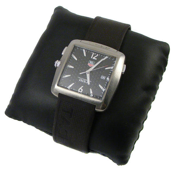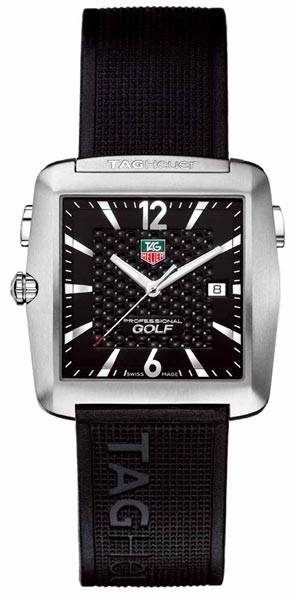 Dial: new elegant design in black with a golf ball texture. Luminescent hour markers and hands for optimum legibility. Date at 3 o’clock. Coloured TAG Heuer logo.