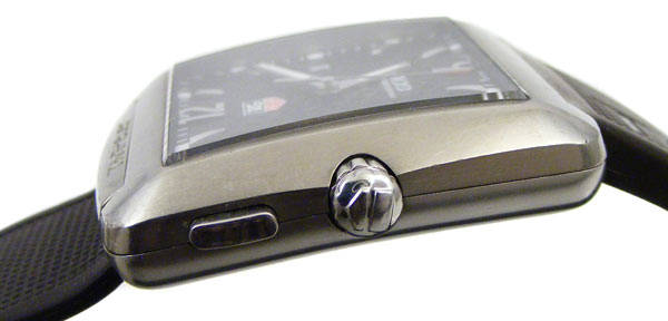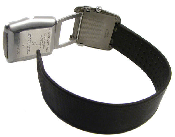 Crown and caseback: at 9 o’clock to avoid wounding the wrist during a swing. Tiger Woods logo on the caseback.