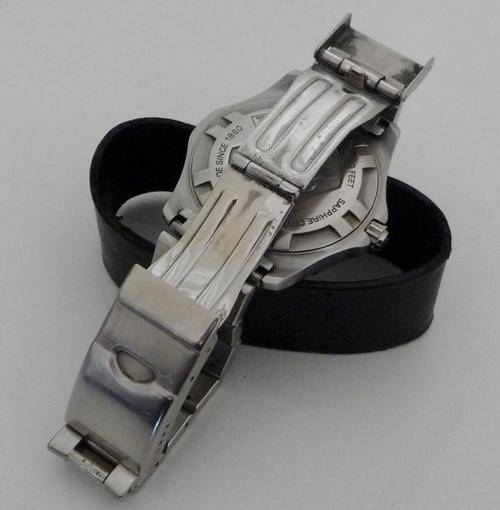 SCRATCH RESISTANT SAPPHIRE CRYSTAL CASE WITH LARGE LUMINESCENT HANDS AND MARKERS