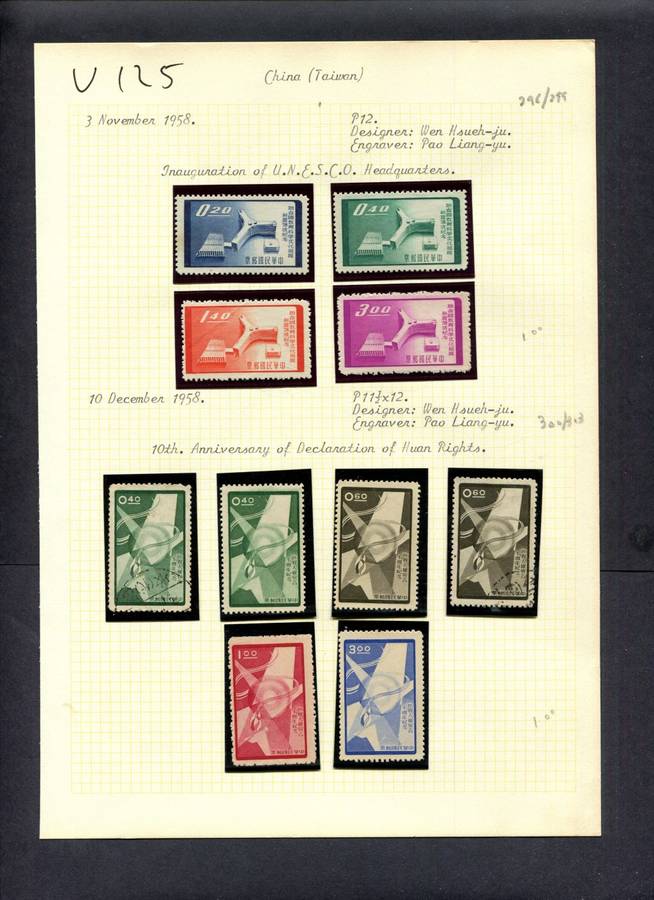 Taiwan - 10 Stamps Mounted (Hinged) On Old Album Page