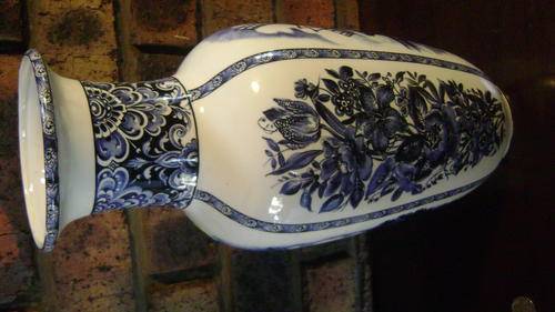 Very nice blue and white vase measuring 32 cm in height, 12.5 cm diameter over top part and 9.5 cm diameter at base