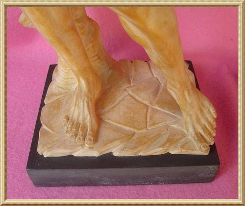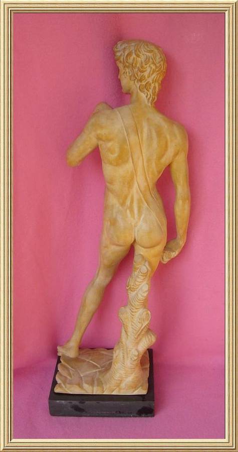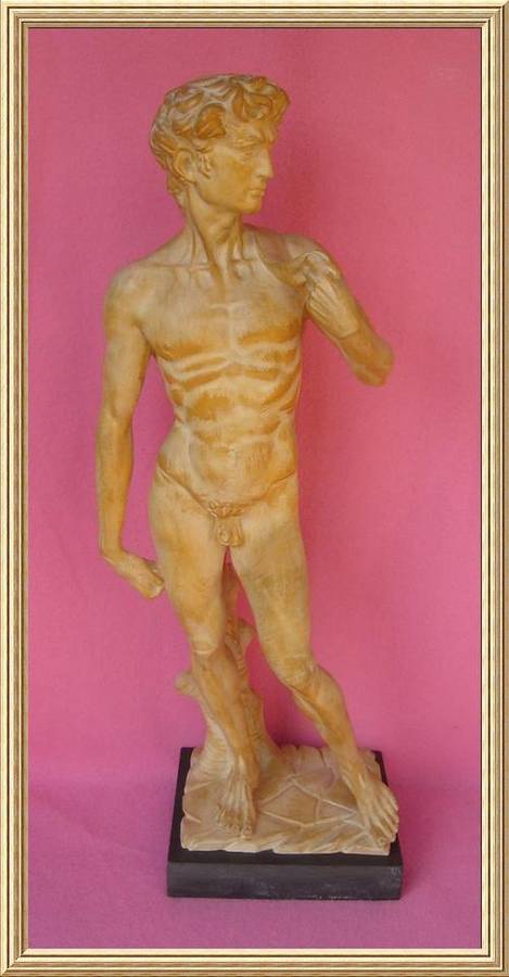 A beautiful old, tall ivorine figurine by A. Santini ( signed to base ) - " Michelangelo's David ", height of 61cm and weight of +5kgs, base is 18cm x 15cm.
