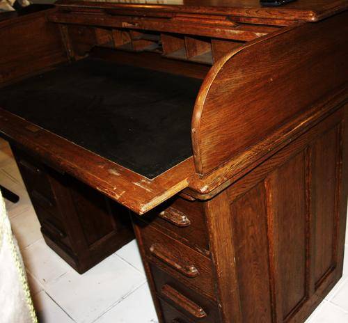 Oak wood with black leather inlay. H - 1m; W - 68cm; L - 124cm