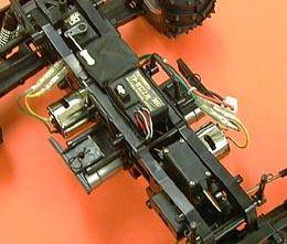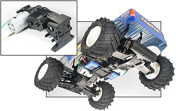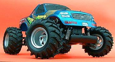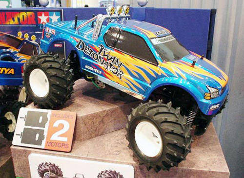 Thundering around off-road stadiums with immense tires, Monster Trucks have fascinated the world for years. Tamiya is proud to present its latest radio-controlled monster truck: the Twin Detonator. In order to generate power worthy of its dynamic image, the chassis has been equipped with a motor in both the front and the rear. With the battery located in the middle of the chassis, the Twin Detonator is perfectly balanced for rough riding. The centrally positioned servo ensures the equal alignment of the steering tie rods, improving control. The four-wheel double wishbone suspension offers flexible handling over all road conditions.