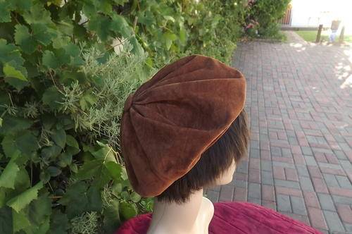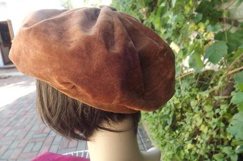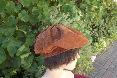 Tan colour Suede look hat.Pretty and versatile.Used but in good condition.
