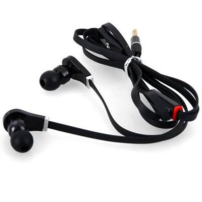 Tangle-free Flat Cable High Quality Sound Deep Bass Earphone with Mic - BLACK