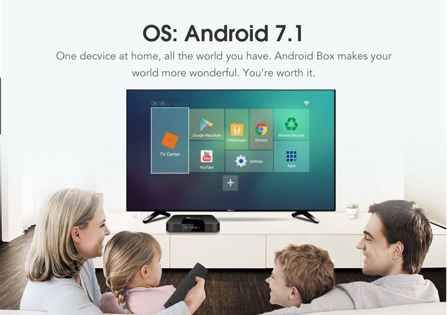 The Android TV Box operates Android 7.1, and comes with your favourite apps preinstalled:
