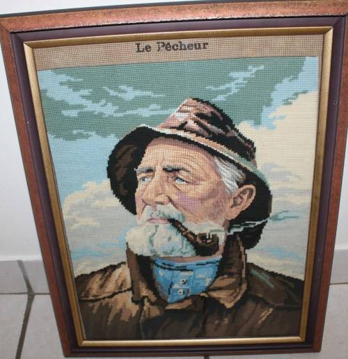 Tapestry-'Le-Pecheur' Framed-45x58cm-Beautiful 'Art' Piece-Behind Glass.