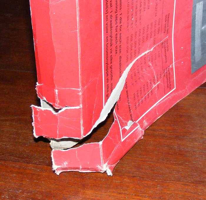 The cardboard box has a tear in one corner which I have detailed and obvious signs of wear