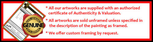 Should the item prove to be not by the hand of the advertised artist by an acknowledged authorized agent for such an artist the item will be replaced with an item of similar, size, media and value.