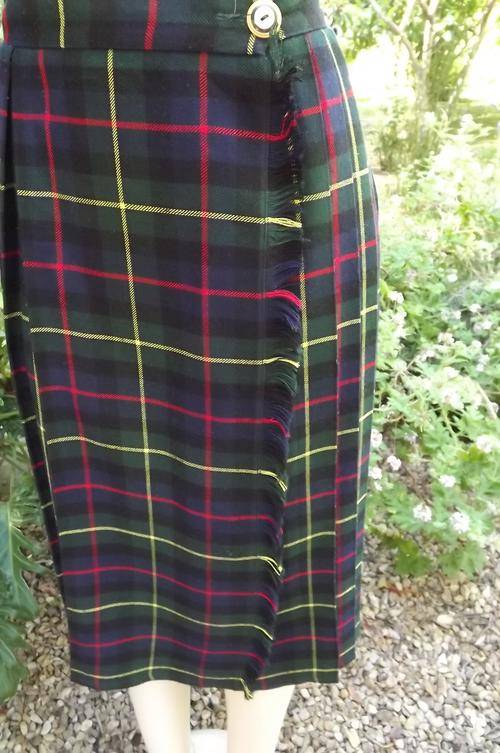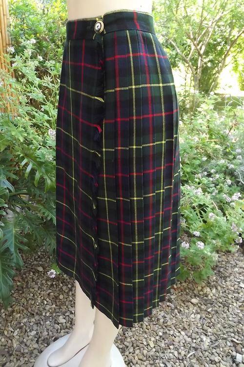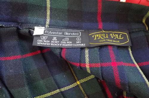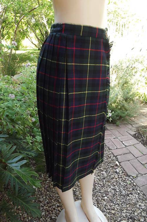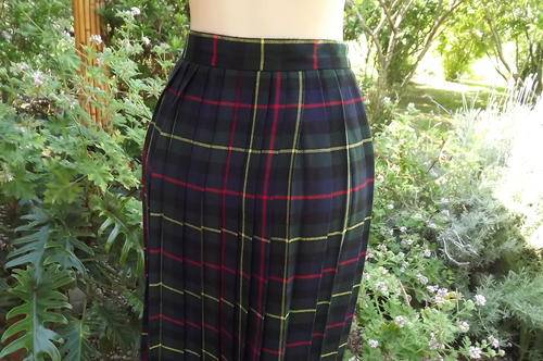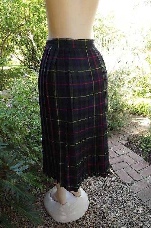 Tartan check fold over "TruVal"polyester blend winter skirt.Size 34/10.Knife pleated with flat front