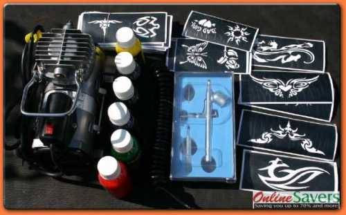 Complete with Gun, Compressor, Hose, 6 Inks, Stencials