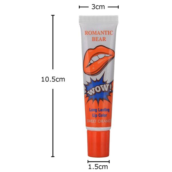 Description: Item Type:Peel off lip gloss Ingredients:Vitamin E,Rose hips oil,Aloe essence,Natural fruit essence,Polybutylene,Mixed wax Color: Sweet Orange, Sexy Red, Lovely Peach, Cherry Red, Rose Pink(choose the one you like) Net: App 15g Length:App 10.5cm Weight:App 25g Skin Type:All skin types