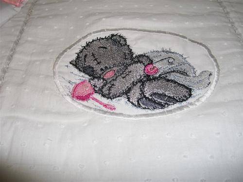 Quilt: Embroidery on the Front, White Flennie Backing.