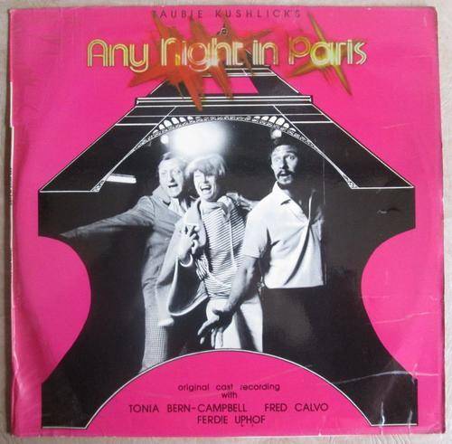 A lovely find. 1976 pressing by Satbel of the Brel/Aznavour inspired Any Night in Paris. Original cast recording with Tonia Bern-Campbell, Fred Calvo and Ferdie Uphof. Arranged and devised by Taubie Kushlik. Vinyl very good, cover good with some de-lamination and small tear to back edge. Scarce record! Also a copy of the more often encountered Jacques Brel is Alive & Well & Living in Paris. Vinyl and cover both good. Tracked P&P is R45.00.