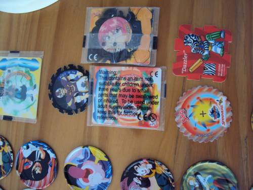 included:- 27 x metal dragon tazos, plus 5 x silver, plus 3 x gold, plus spinner & extras still in packet.
