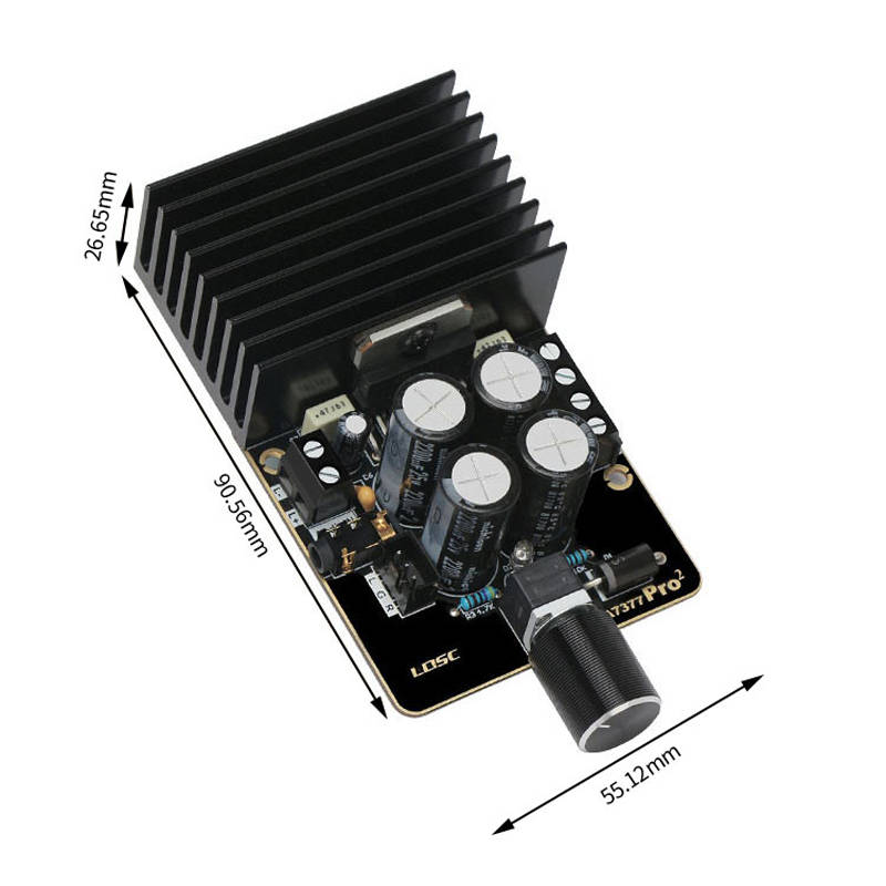| Description: -Input voltage range is DC 9-18v; output power is 30W+30W; can be connected to 4-8 ohm speakers. -High Performance: Adopts high-grade pure black immersion gold circuit board, KEMET speaker capacitor, double NICHICON large-capacity filter capacitor per channel, high-quality monolithic filter capacitor and metal film resistor. These provide a high performance for this audio amplifier board. -Specially-customized Terminals: The automotive amplifier module adopts specially-customized pure black copper terminals, gold-plated audio access terminals and 3P pure black terminals. -Adjusting Knob: This dual-channel amplify module is comes with a adjustable knob, the volume can be adjusted conveniently. -Safe Protection: The stereo amp board is designed with input reverse connection protection, short-circuit protection, over-current protection, over-heat protection, which can protect your device perfectly and extend its service life. -Process materials:high-grade pure black immersion gold circuit board, imported KEMET audio capacitors, double imported NICHICON large-capacity filter capacitors per channel, domestic first-line brand monolithic filter capacitors and metal film resistors. Special order pure black pure copper terminal, gold-plated audio input terminal, order 3P pure black terminal. Specification: Power supply voltage: DC9-18V, 12V is recommended Output power: 4-8 ohm speakers can be connected, up to 2x35W stereo (18V 4 ohm) Input mode: 3.5mm audio input / 3P expansion input port Net weight: 112g Size: PCB size: 58.67*55.12mm Potentiometer handle opening: 7mm Overall (including heat sink): (length * width * height) 90.56*55.12mm*26.65mm Package included: 1 x Amplifier Board