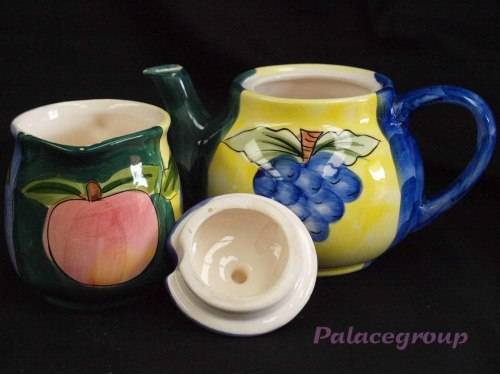 Tea Pot and Milk Jug, Shades Of Blue, Yellow and Green With Fruit Decoration, Glazed, See Photos.... Tea Pot and Milk Jug, Shades Of Blue, Yellow and Green With Fruit Decoration, Glazed, See Photos.... Tea Pot and Milk Jug, Shades Of Blue, Yellow and Green With Fruit Decoration, Glazed, See Photos.... Tea Pot and Milk Jug, Shades Of Blue, Yellow and Green With Fruit Decoration, Glazed, See Photos....