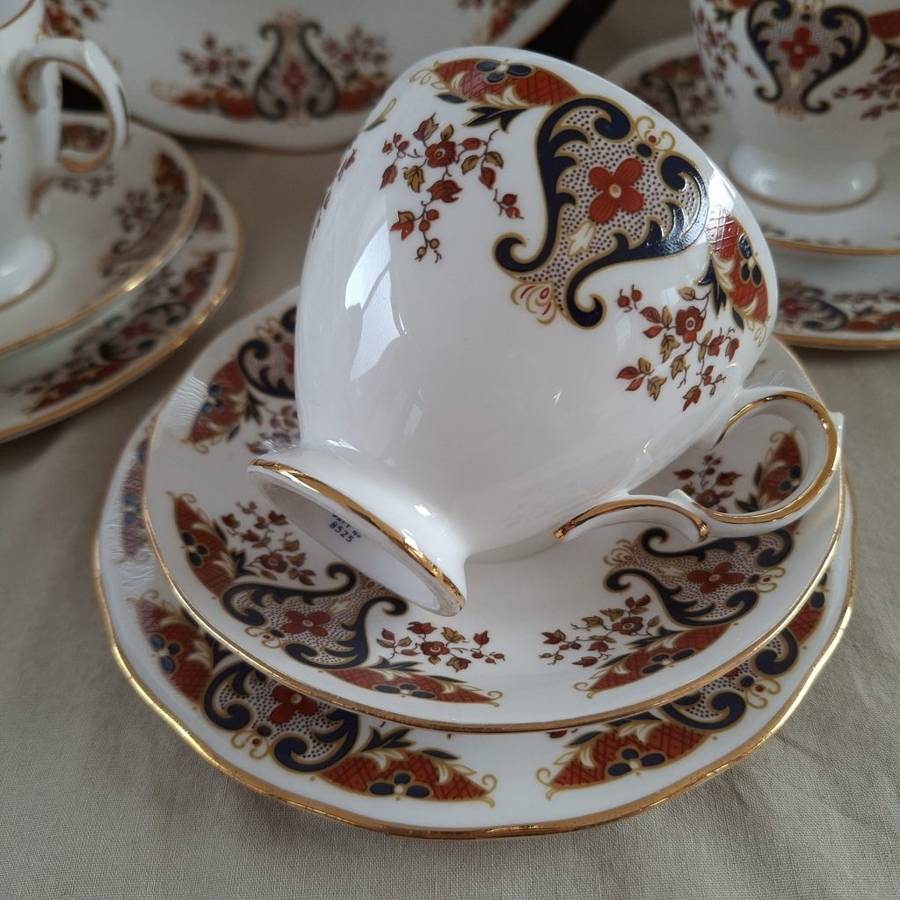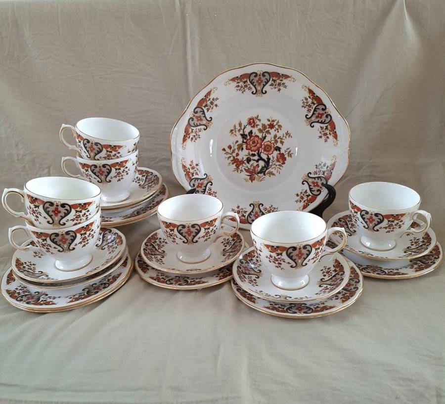 Tea set 6 trios - lg cake plate - jug - sugar bowl Colclough english porcelain