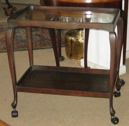 TEA TROLLEY - QUEEN ANNE STYLE WITH GLASS TOP