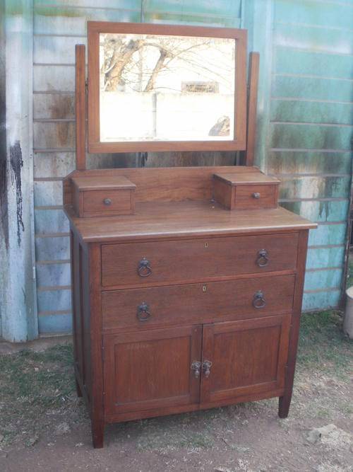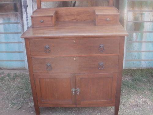 TEAK DRESSING TABLE WITH DRAWERS AND DOORS