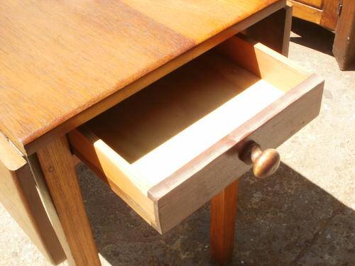 TEAK DROP SIDE TABLE WITH DRAWER