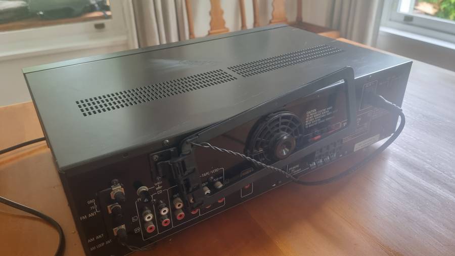 This turns on when plugged in but the sound from the radio and cd player and turntable is very soft. Also has Tape Monitor /VCR 2 option as well as Tuner, Phono, CD and VCR 1, Needs a proper repair and service. Would be an excellent project for someone who knows about electronics.