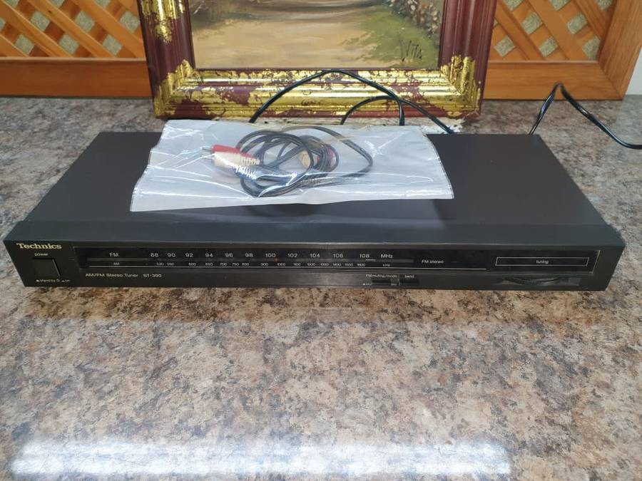 Up for offer is a Technics AM/FM Sereo tuner ST-300. Old school analog style tuner, thumb wheel type control, not weighted. Works beautifully with a sensitive front end to pick up signals. Unfortunately the loop antenna has been misplaced and is not included with the unit.