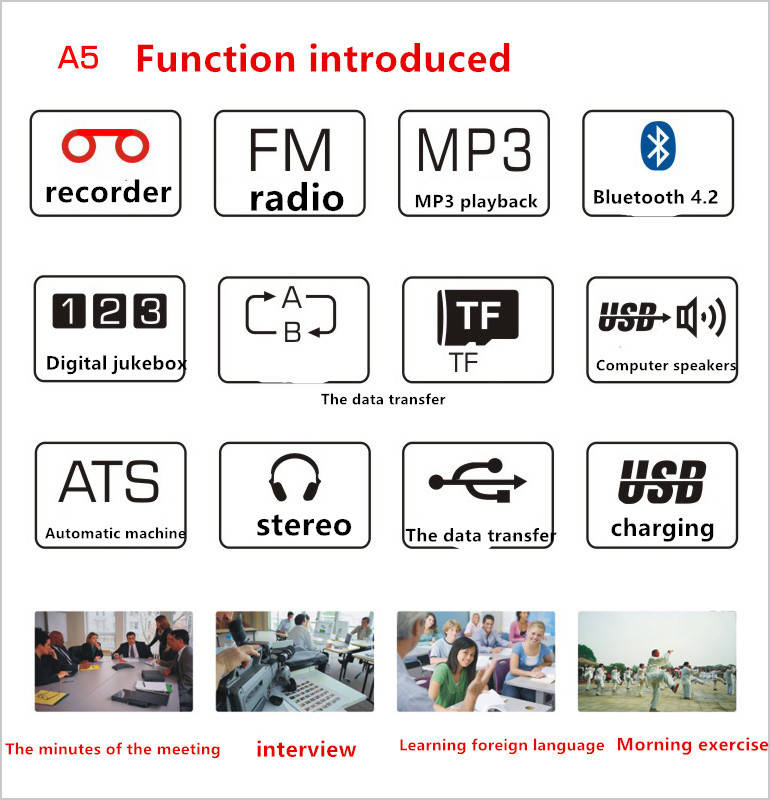 The recording format is MP3/128Kbps, the recording and playback sound quality is good, 1G can record for about 15 hours, and the maximum support 32G TF memory card.