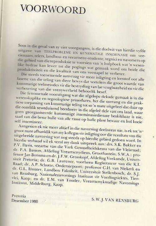 Teelprobleme en Kunsmatige Inseminasie - SWJ van Rensburg (2de druk 1983)