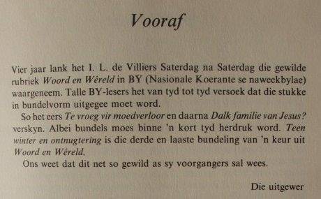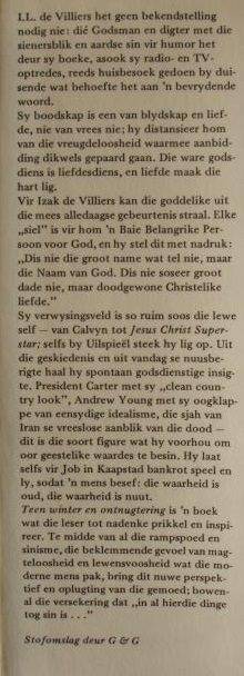 Beskrywing: Essays met 'n godsdienstige tema, het oorspronklik in Woord en Wereld (BY rubriek) verskyn, sien ook foto's.