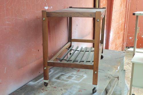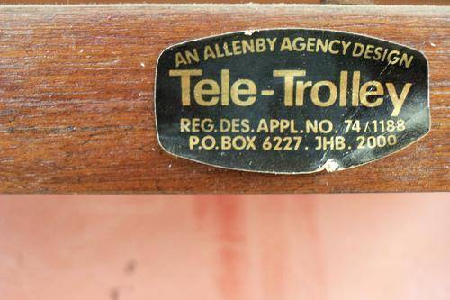 Very nice good condition Tele Trolley. Not sure what wood, but strong and sturdy. Can also be used as a tea or drinks trolley. Trolley is easily movable because of wheels.