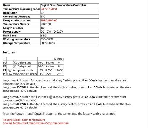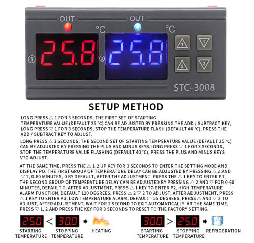 Digital Temperature Controller STC-3008 Thermostat 12V: