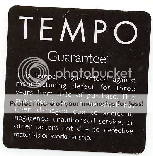 This watch still have a 3 Year Tempo Guarantee. Gaurantee will be included.