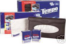 THIS IS THE TEMPO STARTER KIT CONTAINING 1 BLACK CAR CASE TISSUE HOLDER FOR THE VISOR OF YOUR AUTOMOBILE AND 2 TISSUE PACKS