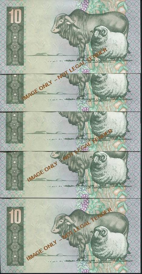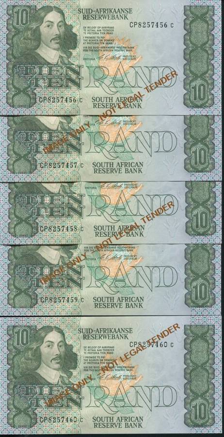 TEN RAND AUNC STALS BANKNOTES IN SERIES X 5 - 1ST SSUE 1990