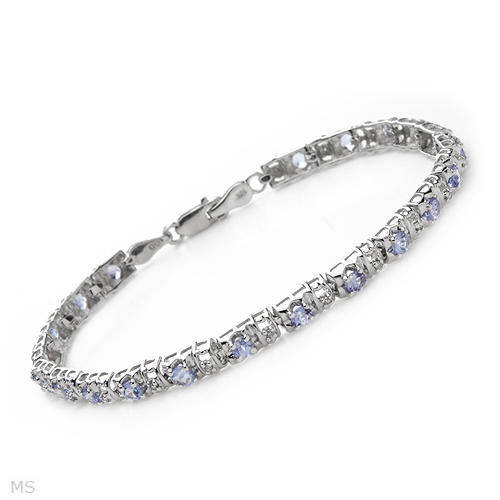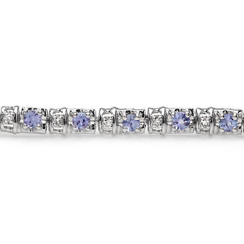 TENNIS BRACELET WITH NATURAL EYE CLEAN DIAMONDS AND TANZANITES IN 10K WHITE GOLD.