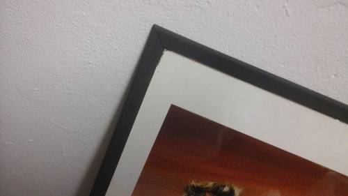 IT HAS GLASS IN THE FRONT AND BACK TO PROTECT THE PHOTO AND A WIRE AT THE BACK TO HANG IT TO THE WALL.