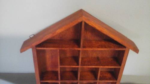 THIS FANTASTIC PIECE RESEMBLES A HOUSE AND IS MADE OF WOOD AND IS A BROWN IN COLOR.