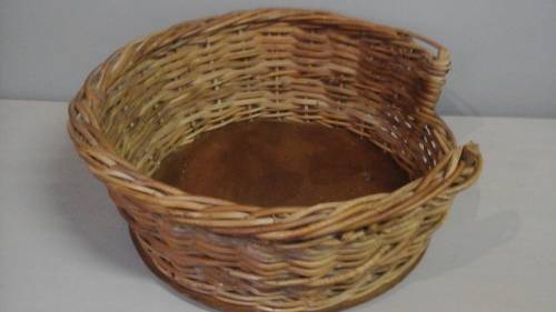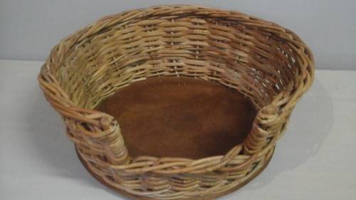 TERRIFIC VINTAGE RATTAN/ CANE AND WOOD DOG BASKET.