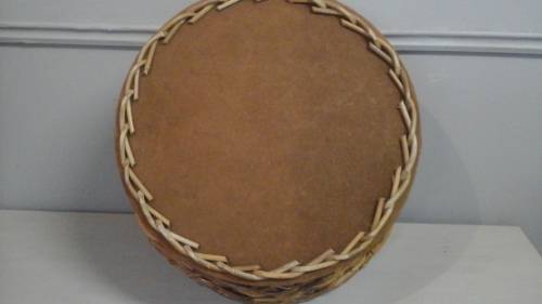 THIS FABULOUS PIECE IS ROUND IN SHAPE AND MADE OF RATTAN. IT HAS A THIN WOODEN BASE.