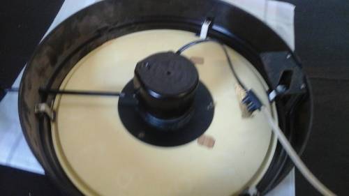 IT HAS ELECTRICAL WIRES COMING OUT THE SIDE AND A DIAL STICKING OUT THE BOTTOM.