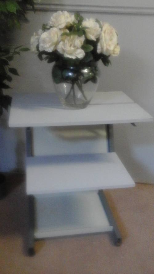 TERRIFIC WOOD AND STEEL COMPUTER STAND/ DESK.