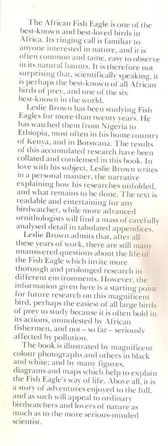 The African Fish Eagle By: Leslie Brown