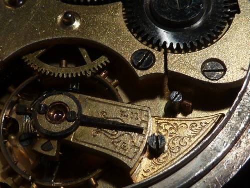 Inside the back cover where the winding mechanisms are being writing that is hard to make out. Maybe (from top to bottom)