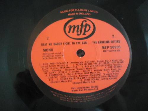 On offer is this THE ANDREW SISTERS "BEAT ME DADDY, EIGHT TO THE BAR" UK IMPORT - MFP LONG PLAYING LP IN EXCELLENT CONDITION