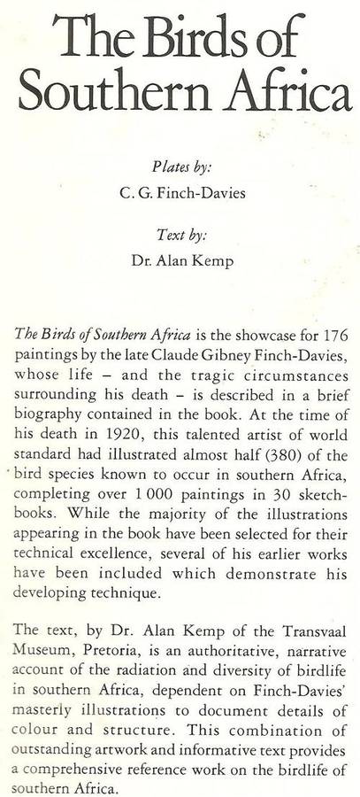 The Birds of Southern Africa By: Claude Gibney Finch-Davis & Dr. Alan Kemp *** Limited Edition***